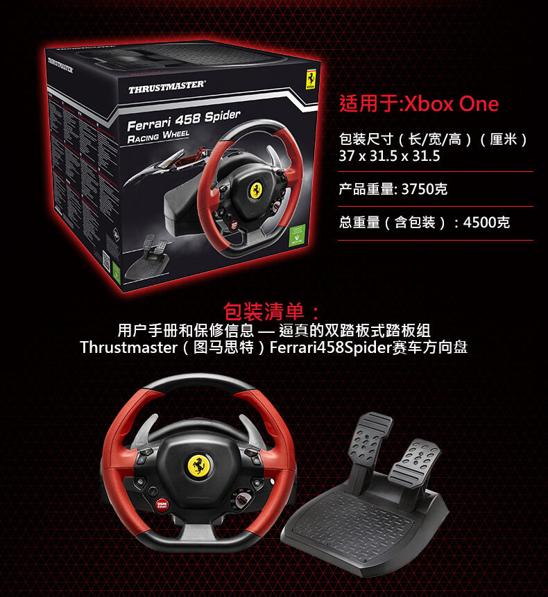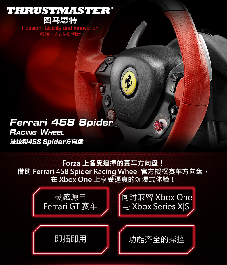 图马思特(THRUSTMASTER) Ferrari 458 Spider 法拉利458赛车游戏方向盘 Xbox One Xbox Series X/S