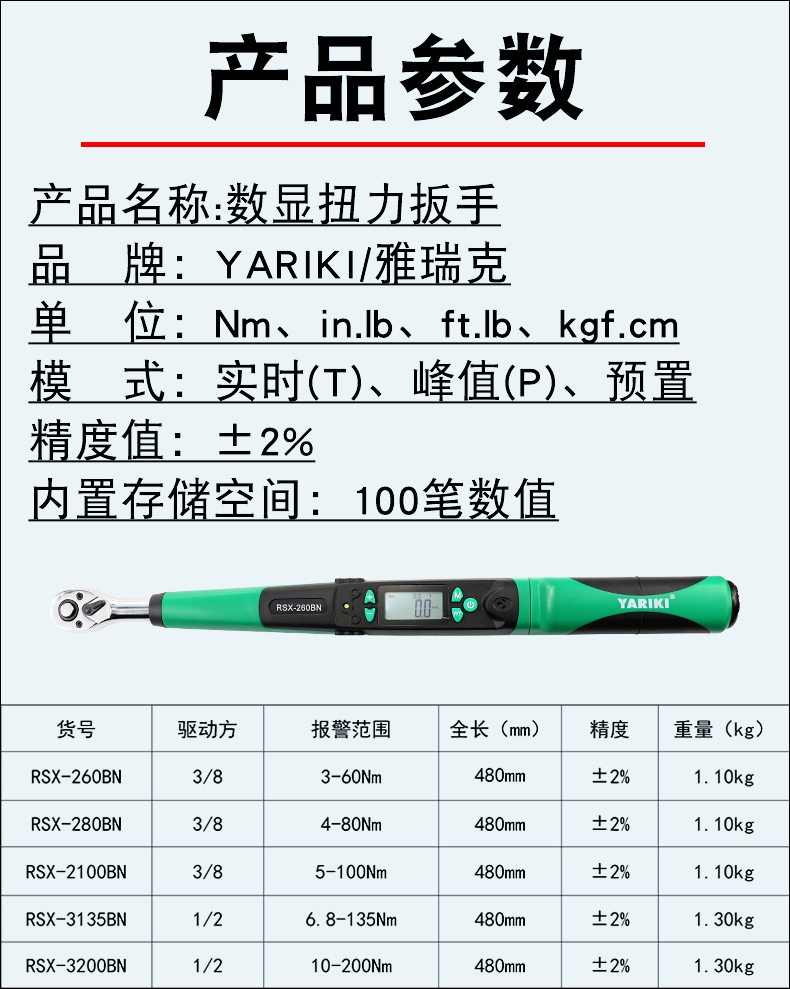 台湾YARIKI雅瑞克高精度检测型电子数显测试扭力扭矩力矩公斤扳手